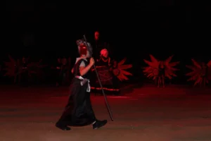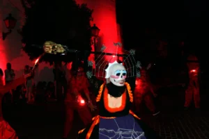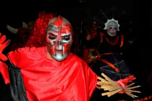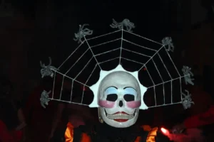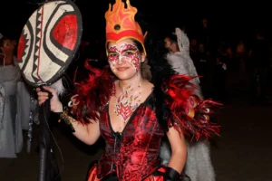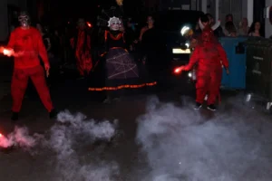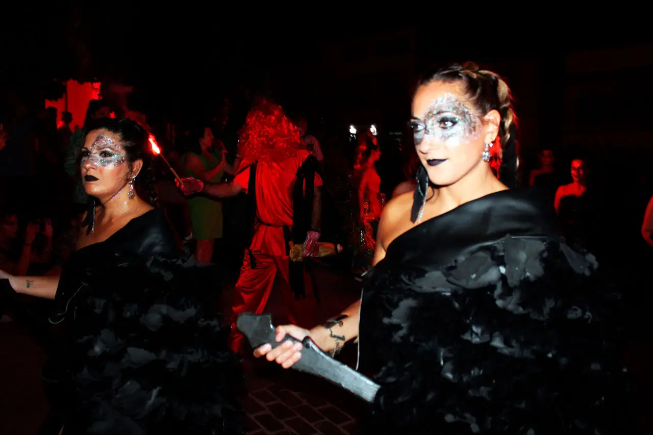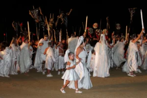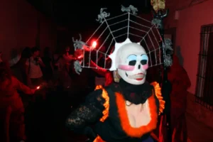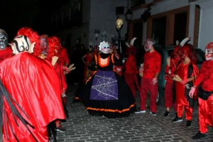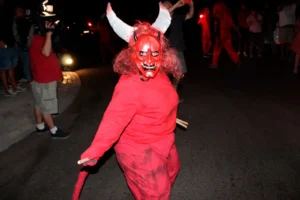 En el pasado, algunas personas se vestían con falda larga y oscura, la cabeza cubierta con un pañuelo negro, arrastrando cadenas y llevando escobas, para asustar a los niños y dar credibilidad a la historia. Con el tiempo, esta tradición se ha transformado en un gran espectáculo que atrae a miles de personas.