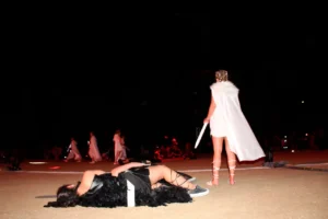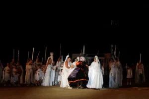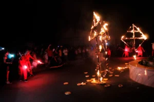 Durante la celebración, una gran figura llamada "La Diabla" escapa de la custodia de San Bartolomé y, acompañada de un séquito de guerreros y diablos, recorre las calles del pueblo en medio de la oscuridad. Este desfile, que utiliza el fuego como su principal arma, siembra el miedo y el terror entre los espectadores. La Diabla y su séquito luchan contra los "Altares de la Vida", colocados por diferentes punto del pueblo, y otros elementos colocados para intentar ahuyentarla.